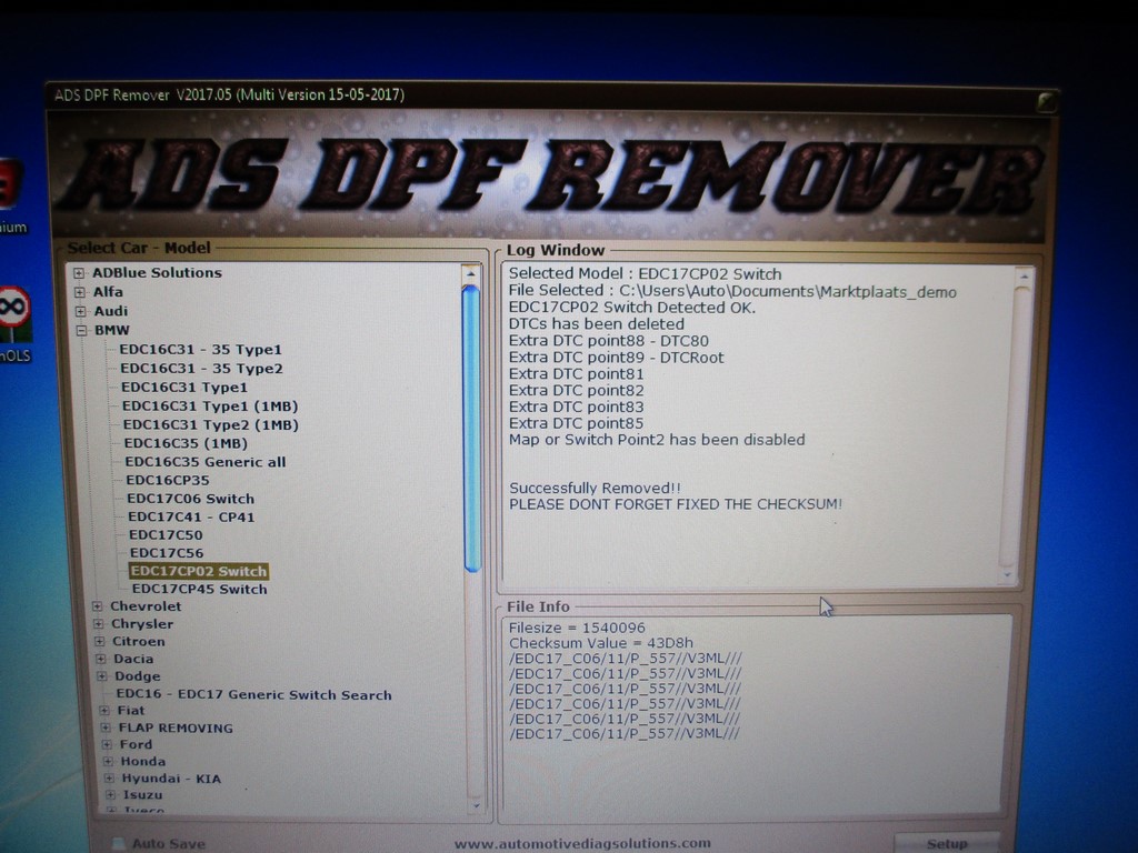 Dat van Checksum heb ik me nog niet in verdiept, maar de DPF is er nu uitgeschreven.